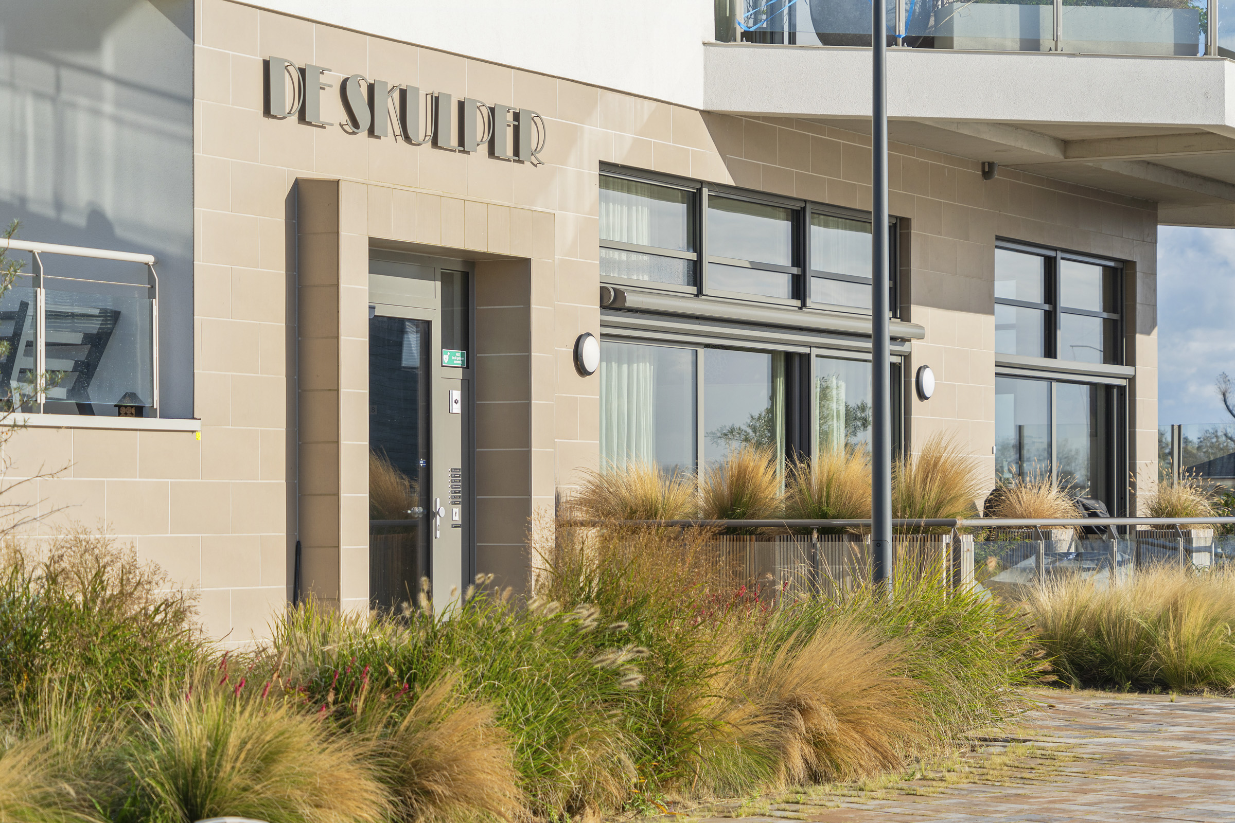Het gebouw is kleinschalig en exclusief: een half verdiepte parkeergarage met daarboven 8 luxueuze appartementen. Degelijk gebouwd met beton en kalkzandsteen wanden en betonnen verdiepingsvloeren, stil, stevig en comfortabel. Het appartement zelf beschikt over twee entrees: één leidt naar het hoofdgedeelte van het appartement, de tweede naar de zijvleugel, een royale ruimte met een slaapkamer, een op maat gemaakte kastenwand en een moderne badkamer. Een fijne, zelfstandige plek die zich uitstekend leent voor bijvoorbeeld een inwonend kind, mantelzorger of au-pair. De auto kunt u kwijt in de onderbouw, en wie nét dat beetje extra wil, kan een aparte parkeerplaats naast het complex bijkopen, handig voor de tweede auto.