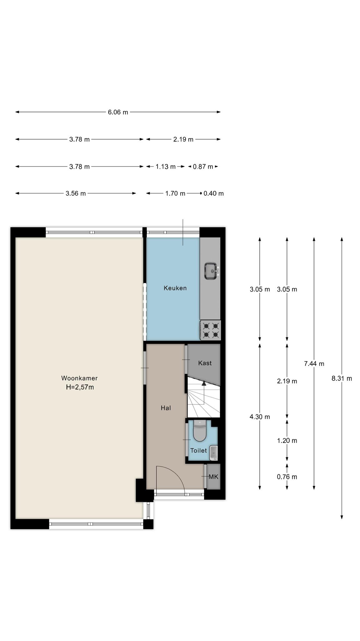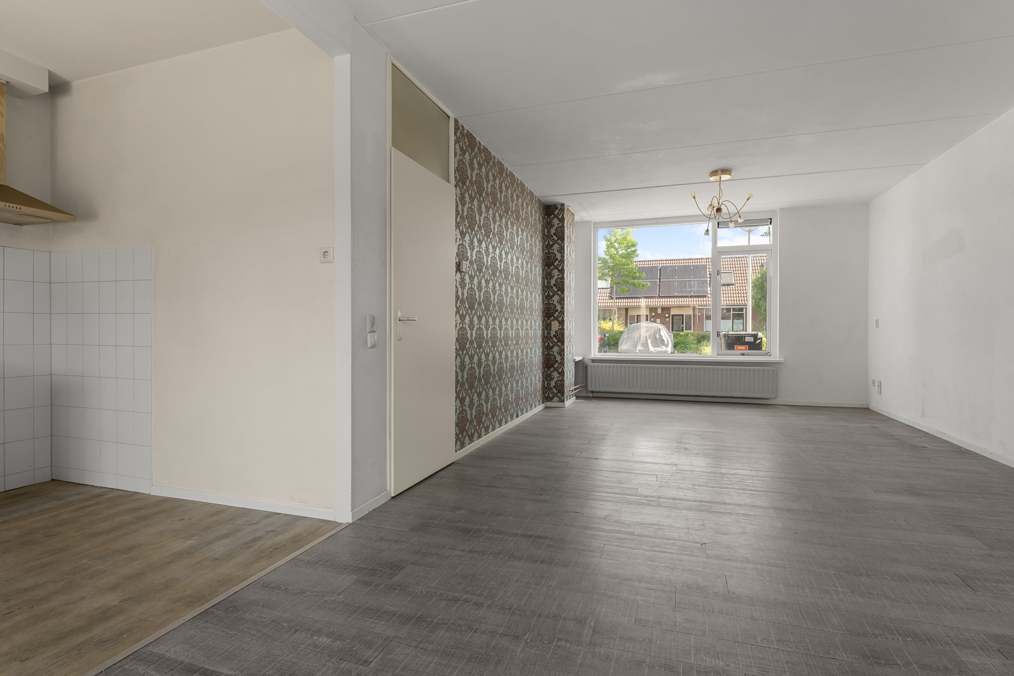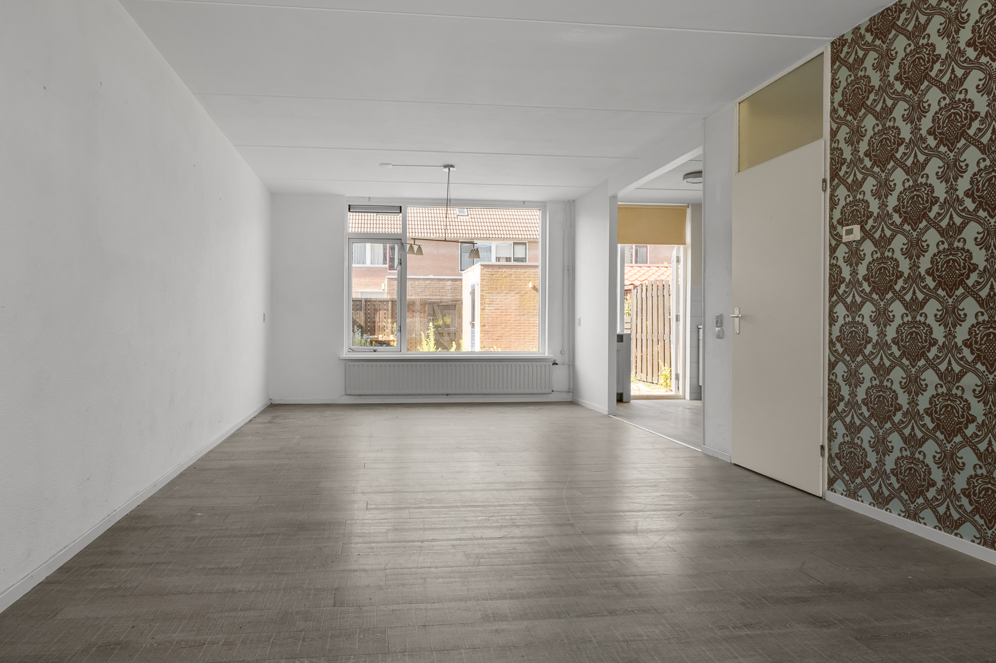 Wanneer u de woning binnenstapt via de entree, treft u direct de meterkast, een praktische trapkast, het toilet en de trapopgang naar de eerste verdieping. Vanuit de hal loopt u door naar de ruime doorzonwoonkamer, die zich uitstrekt over de volledige lengte van de woning. Dankzij de grote raampartijen aan zowel de voor- als achterzijde geniet u hier van een heerlijk lichte en aangename leefruimte.