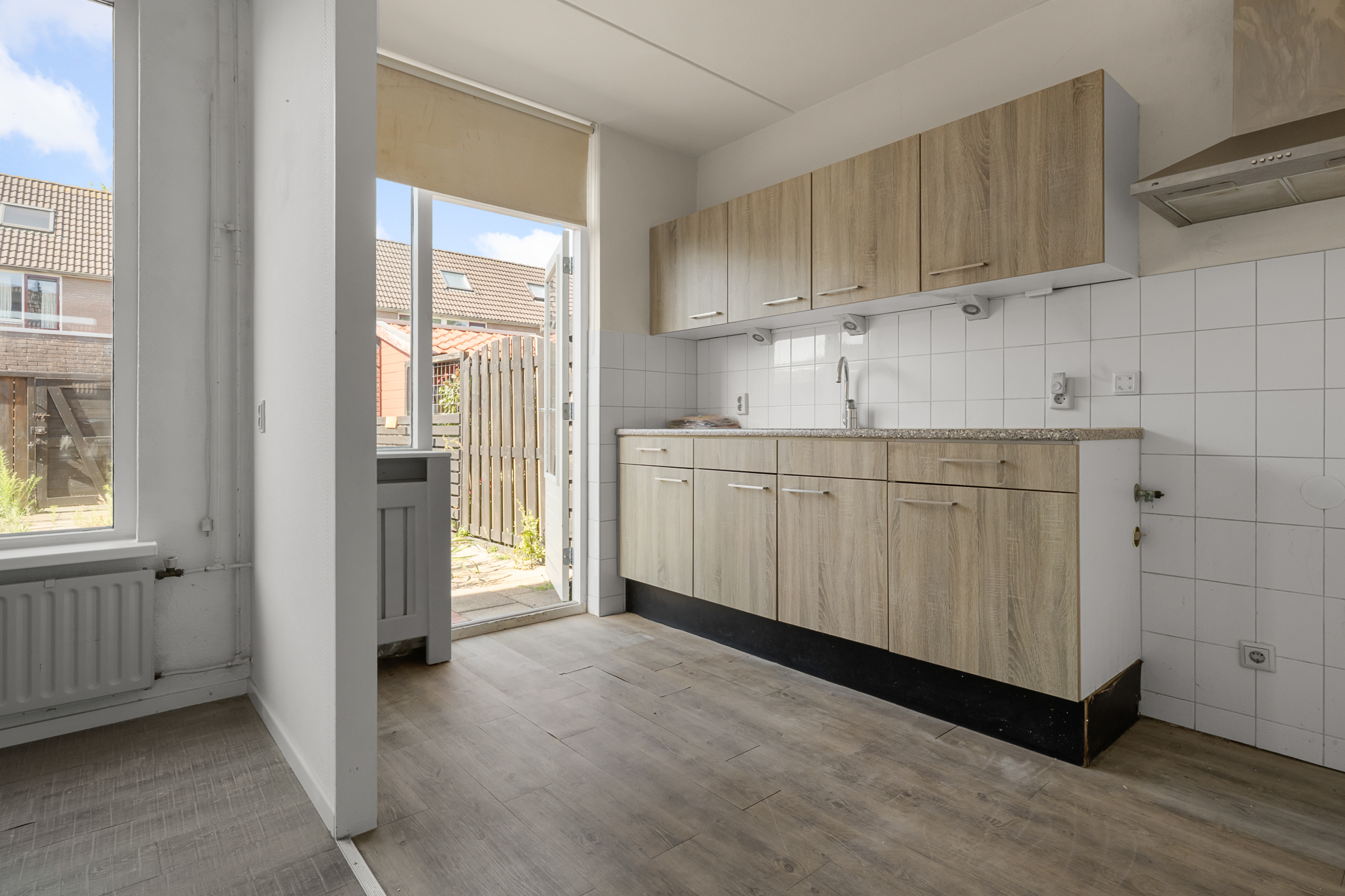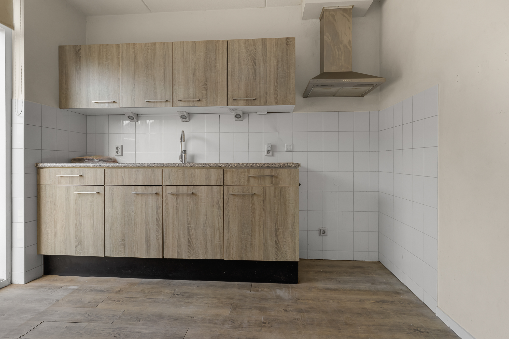 De woonkamer is afgewerkt met een mooie PVC-vloer, die niet alleen stijlvol oogt, maar ook comfortabel en onderhoudsvriendelijk is. Aan de achterzijde bevindt zich de open keuken, die een prettig verlengstuk vormt van de woonkamer. Momenteel is de keuken voorzien van een eenvoudig, functioneel keukenblok – een prima basis, maar vooral een uitnodiging voor u om hier iets bijzonders van te maken.