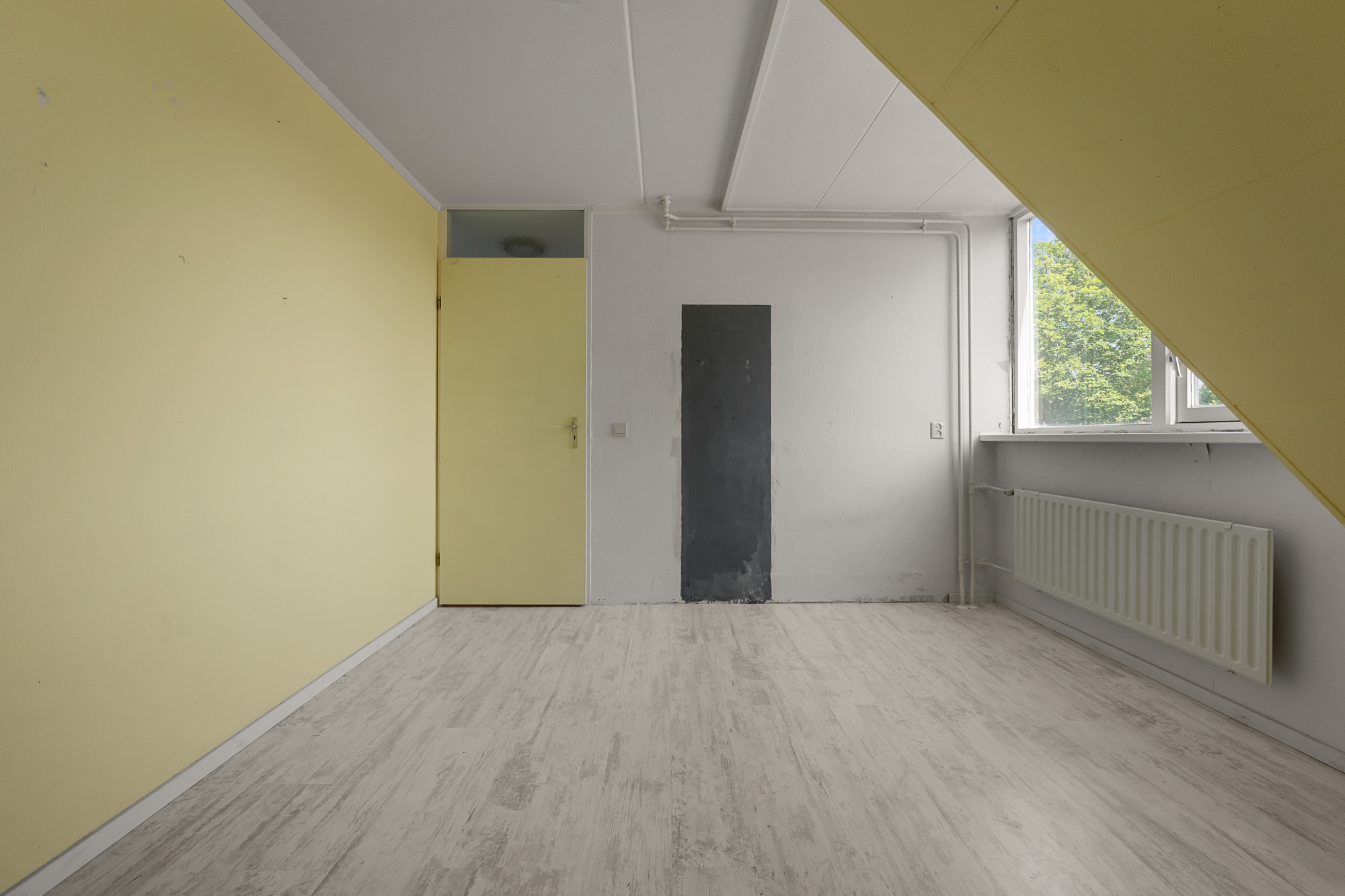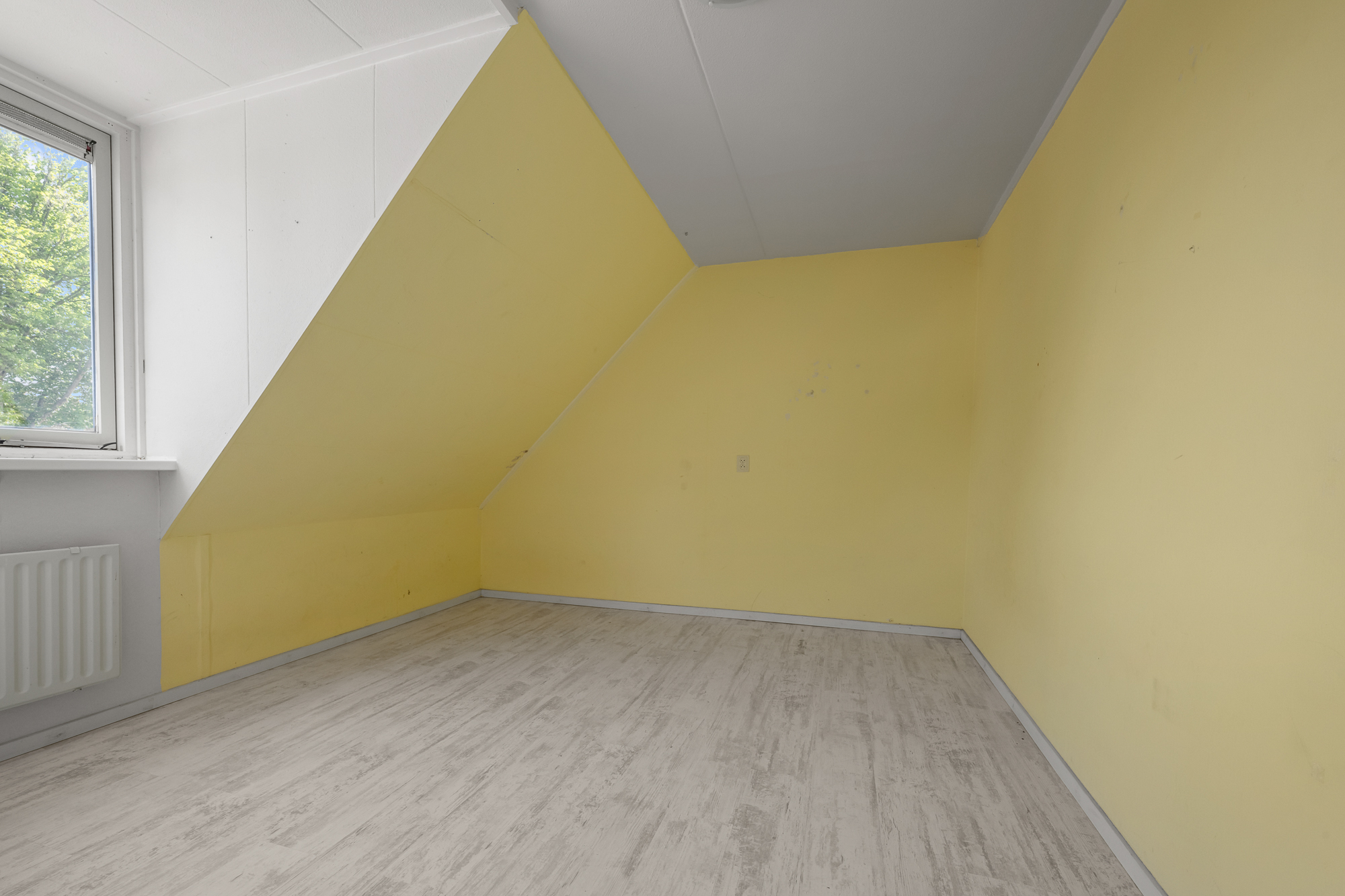 Vanaf de overloop leidt een vaste trap naar de zolderverdieping, waar u wordt verrast door de ruimte en mogelijkheden. Hier vindt u een ruime vierde slaapkamer met een dakraam dat zorgt voor daglicht en ventilatie – ideaal als extra slaapkamer, werkkamer of hobbyruimte. De royale overloop biedt volop ruimte voor opslag of het creëren van extra bergruimte. Ook vindt u hier de opstelplaats van de cv-ketel en de unit voor de mechanische ventilatie.