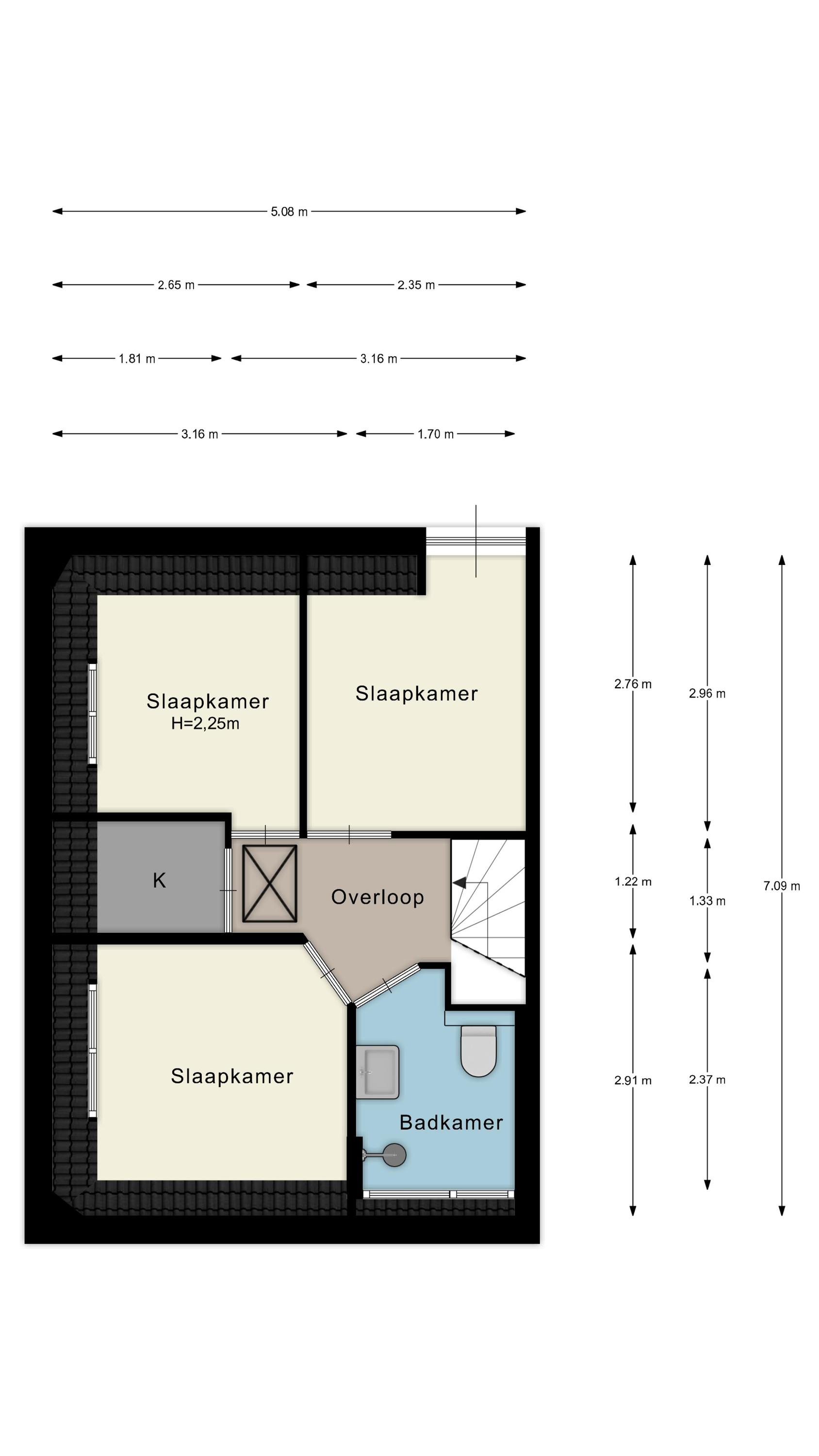 • Drie slaapkamers en een praktische vliering