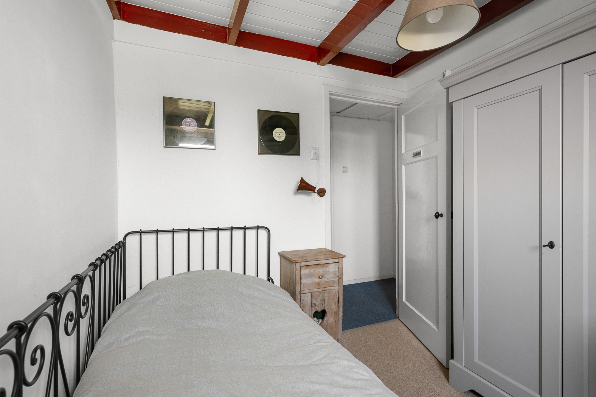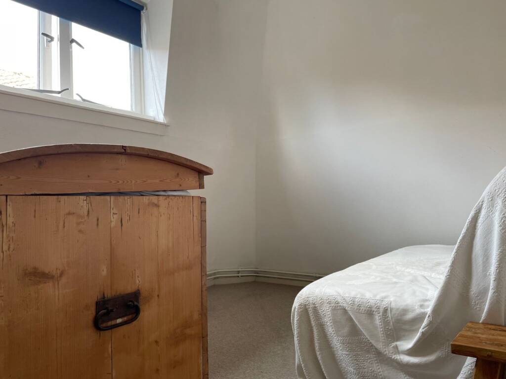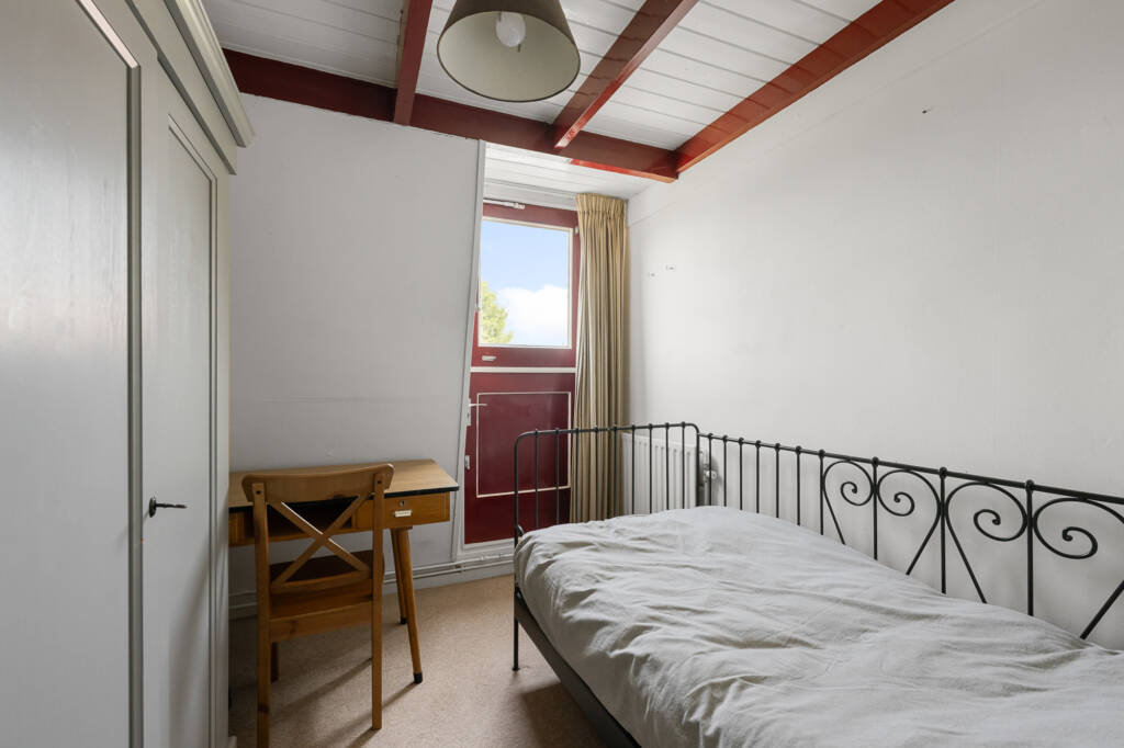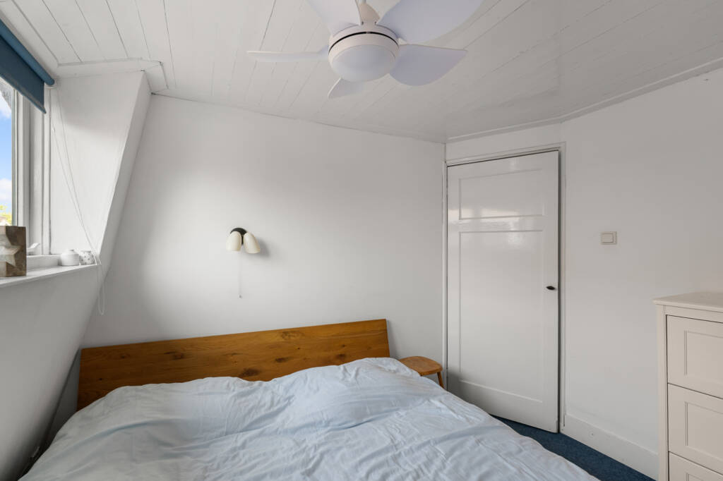 Via de karakteristieke houten trap bereikt u de bovenverdieping met drie slaapkamers: één aan de voorzijde en twee aan de achterzijde. De kamers zijn voorzien van een mooie houten afwerking en comfortabel tapijt, terwijl de dakkapellen voor extra ruimte en veel daglicht zorgen.