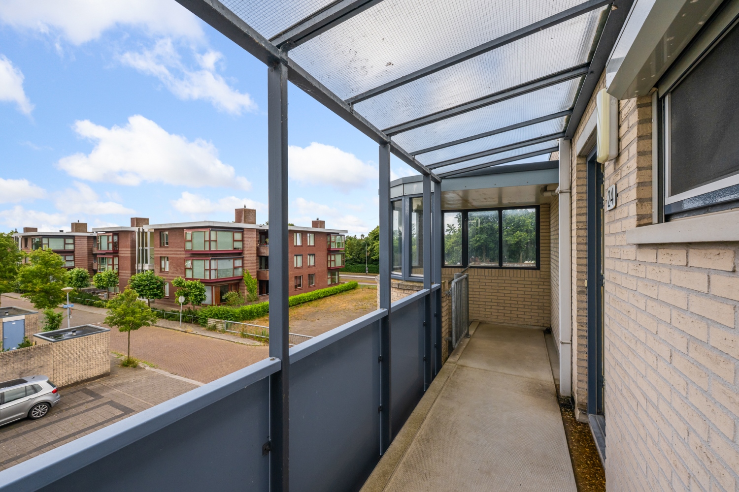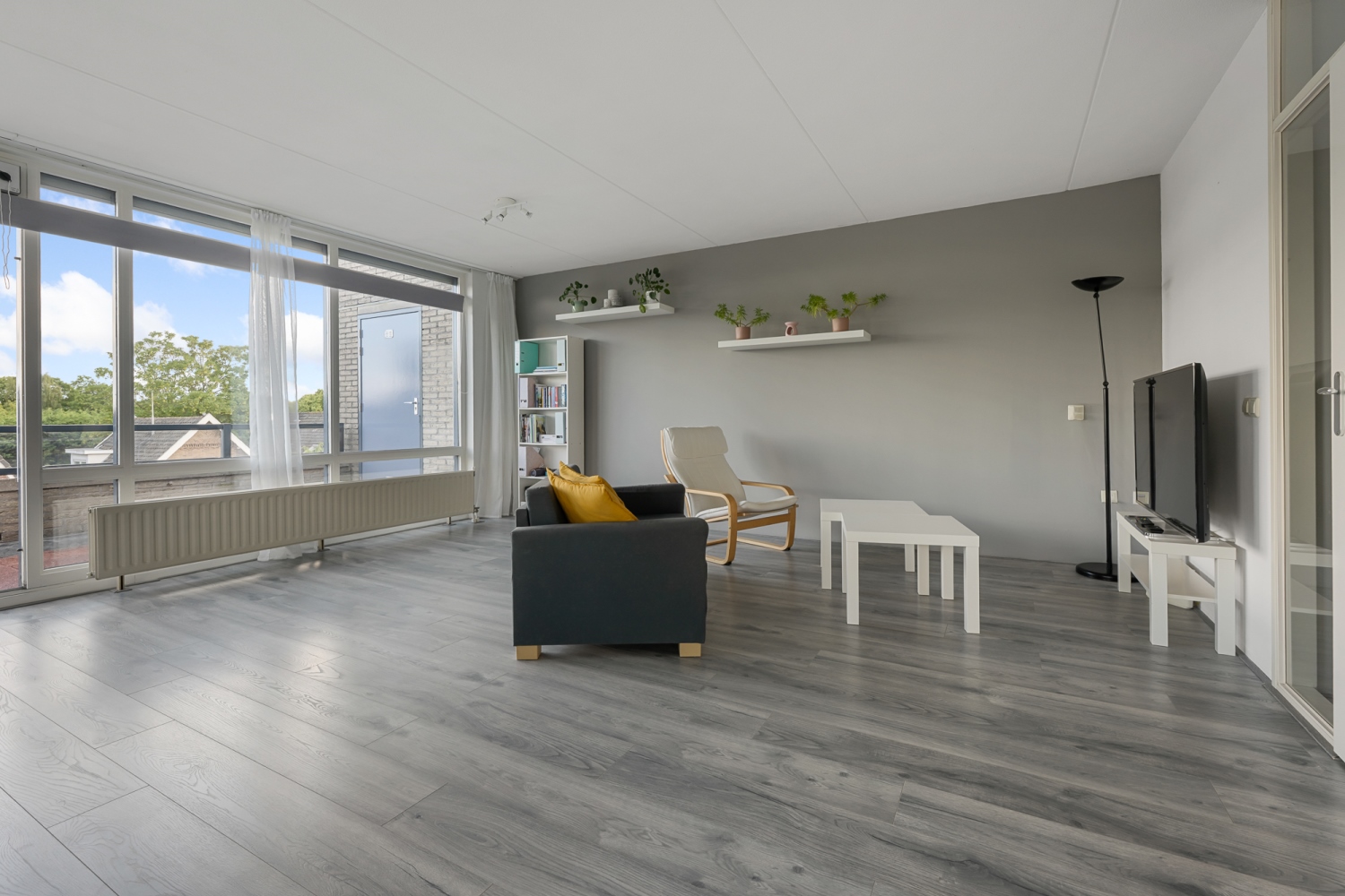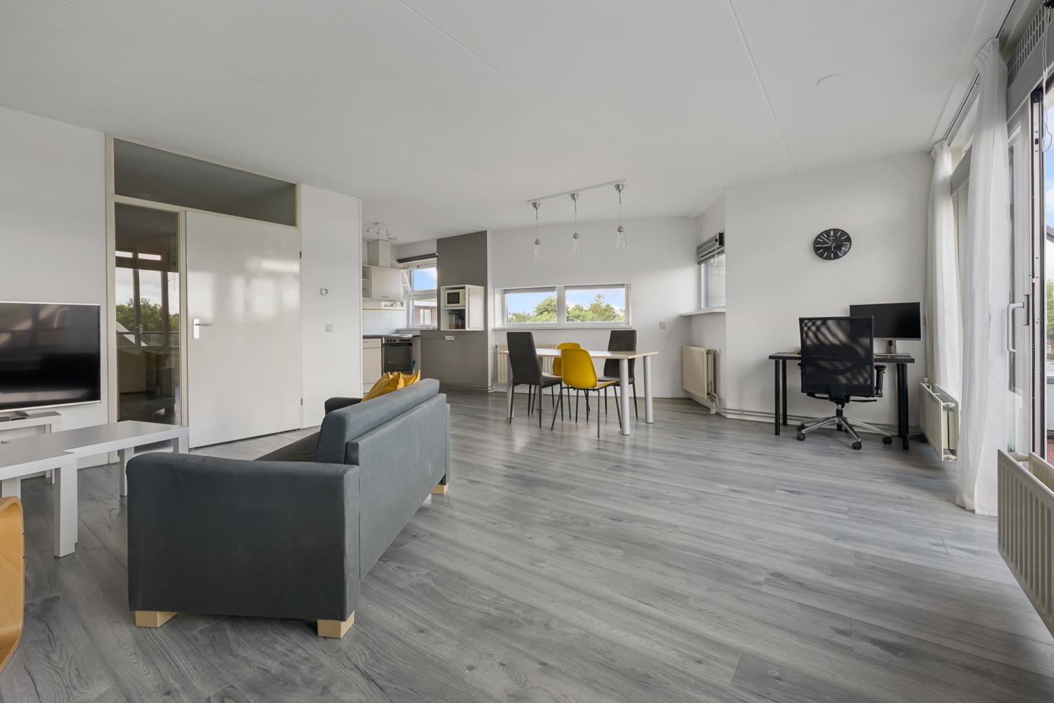 Via de galerij op de tweede verdieping bereikt u de entree van de woning. U komt binnen in de hal, van waaruit u toegang heeft tot alle vertrekken. De royale woonkamer ligt aan de noordwestzijde en geniet dankzij de hoekligging van veel daglicht. De laminaatvloer en de grote raampartijen zorgen voor een warme en open uitstraling. Middels een schuifpui bereikt u het terras, waar u heerlijk kunt genieten van de middag- en avondzon. Ook is via het terras een handige bergkast bereikbaar.