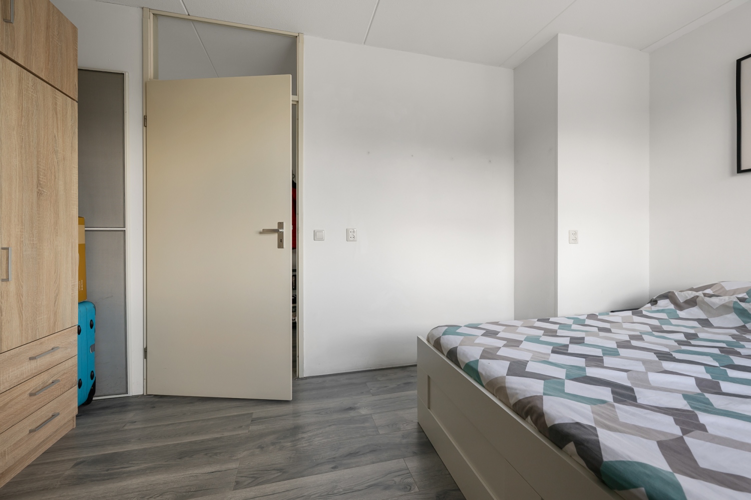 Het appartement beschikt over één slaapkamer. Deze slaapkamer is royaal en comfortabel en grenst aan de galerij zijde.