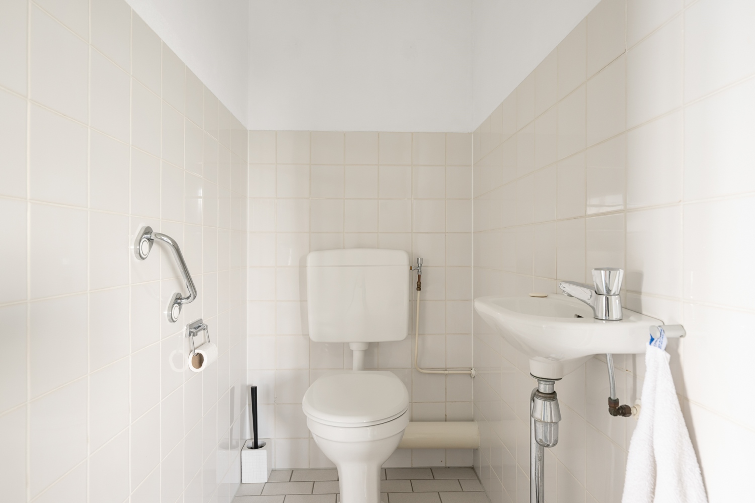 In de hal vindt u verder een aparte bergruimte waar zich de opstelling van de CV-ketel bevindt, evenals de aansluitingen voor wasmachine en droger. Ook is hier voldoende plek om voorraad of huishoudelijke spullen op te bergen.