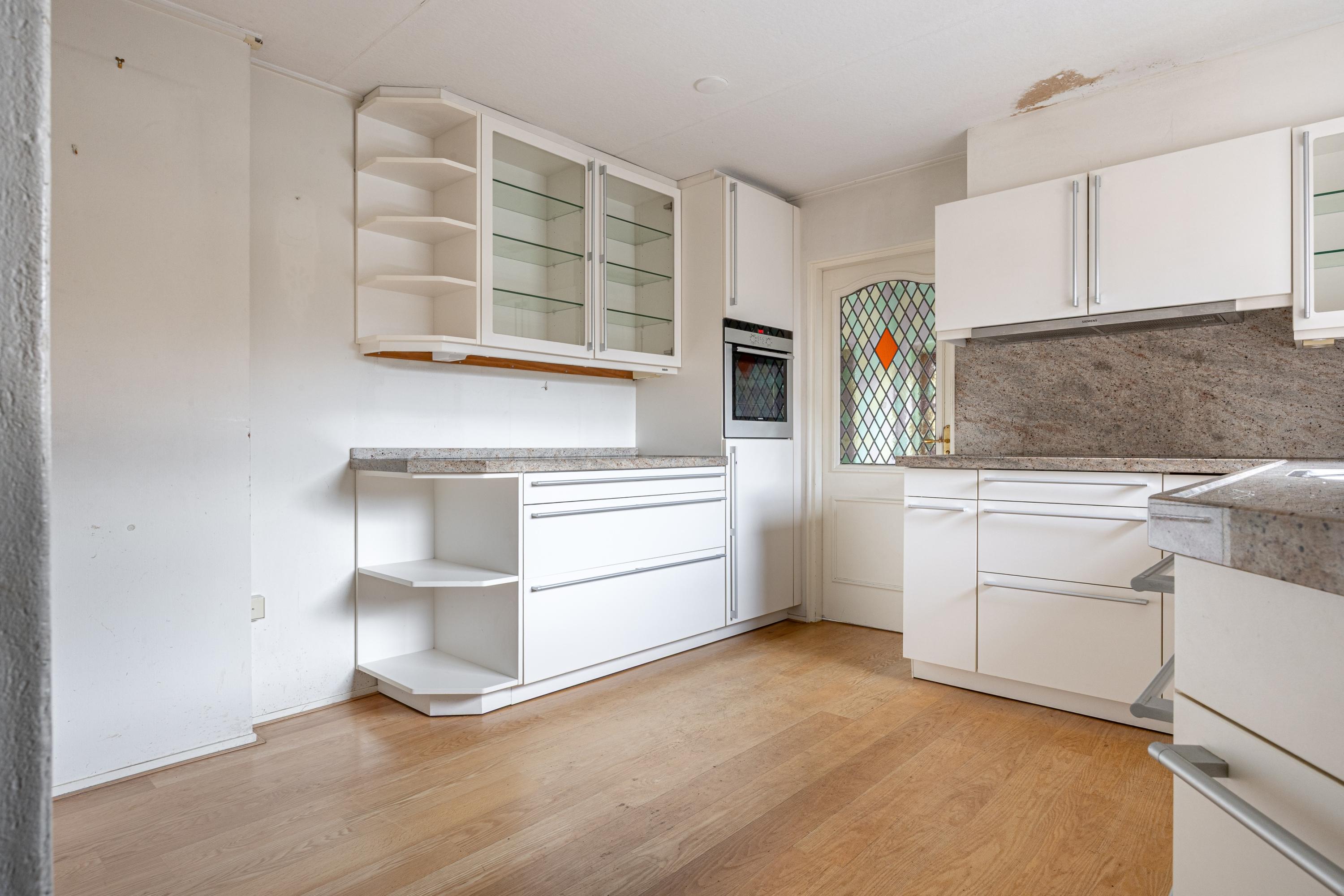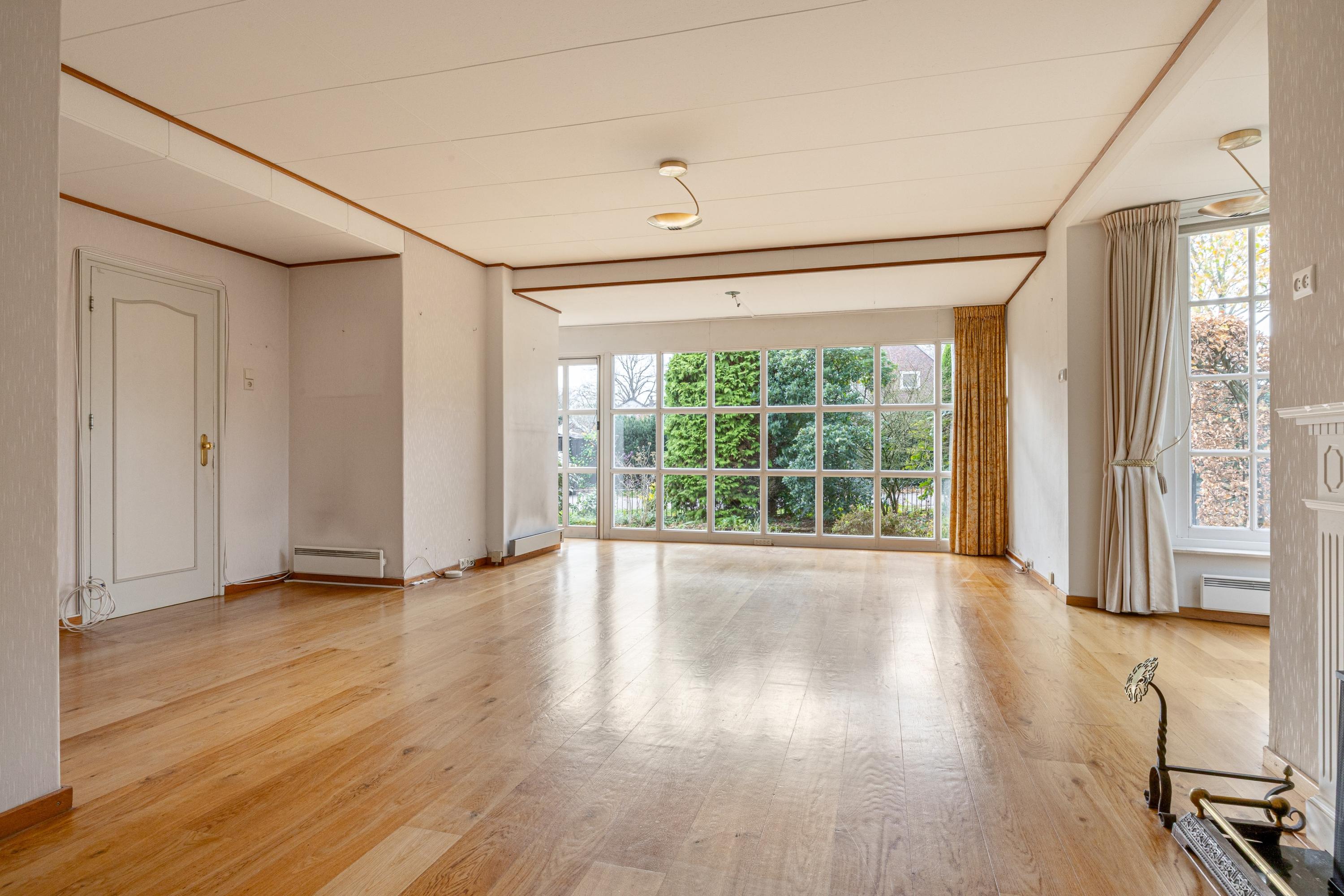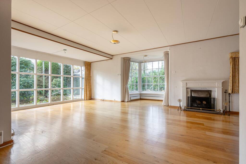 De woonkamer is royaal en sfeervol, met een grote erker en brede raampartijen die het licht prachtig binnenlaten. Hier kijkt u uit op de groene omgeving en voelt u de rust van buiten ook binnen. De haard nodigt uit tot knusse avonden bij het vuur.