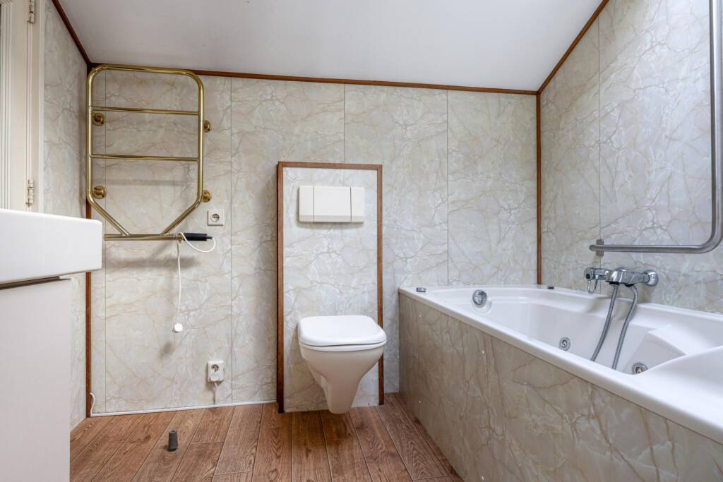 De tweede badkamer is uitgerust met een douchecabine, wastafelmeubel, sauna en dakkapel.