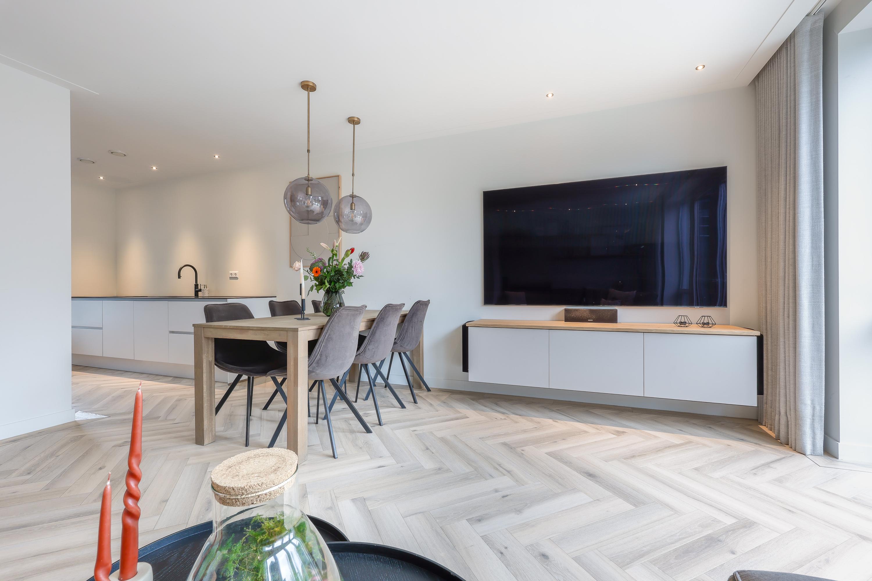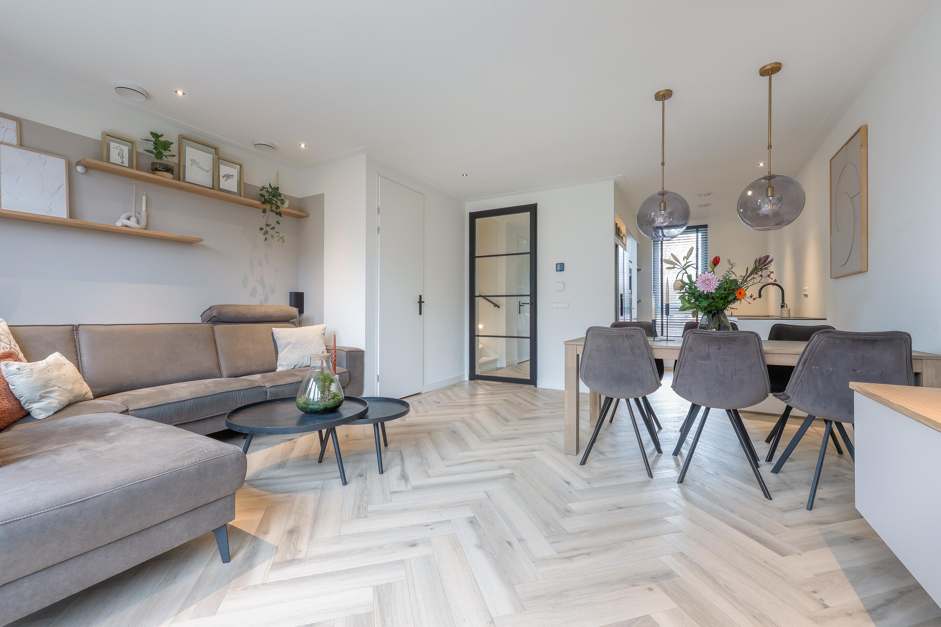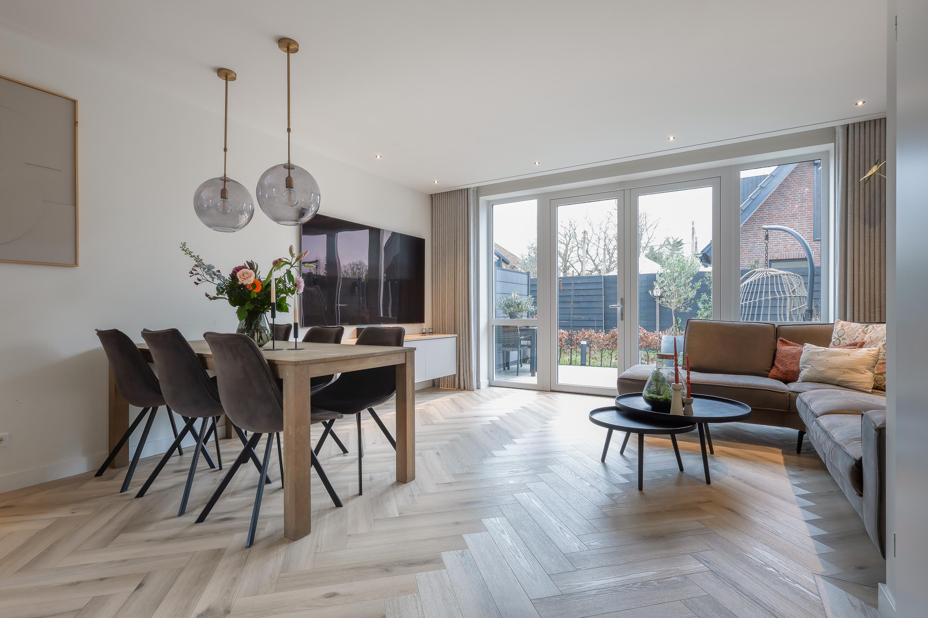 De woning straalt zorg en aandacht uit dankzij de hoogwaardige afwerking. Op de begane grond ligt een visgraat PVC-vloer en de strak gestucte wanden en plafonds maken het plaatje compleet.