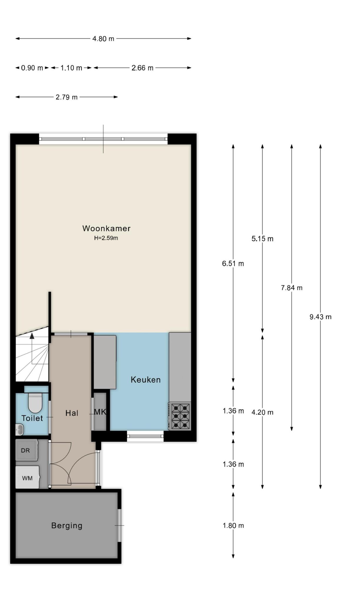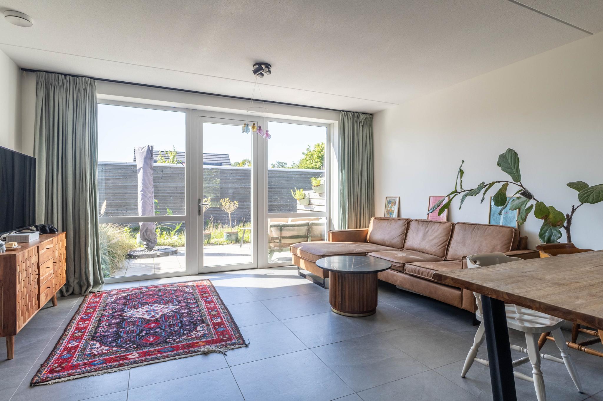 Bij binnenkomst in de hal heeft u toegang tot het toilet, de trapopgang en de lichte woonkamer. De woonkamer bevindt zich aan de achterzijde en is een fijne leefruimte met veel lichtinval dankzij de grote glazen achterpui. Hier heeft u volop mogelijkheden om de ruimte naar wens in te richten. Er is voldoende plek voor een comfortabele zithoek met een bank waar u heerlijk kunt ontspannen. Daarnaast is er genoeg ruimte om een eettafel met stoelen te plaatsen, zodat u gezellig met familie of vrienden kunt aanzitten. Dankzij de openslaande deur geniet u van een fijne verbinding met de tuin. Hier kunt u heerlijk ontspannen en profiteren van de middag- en avondzon.