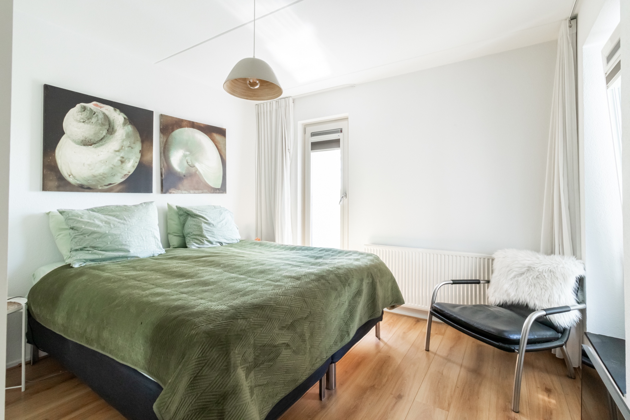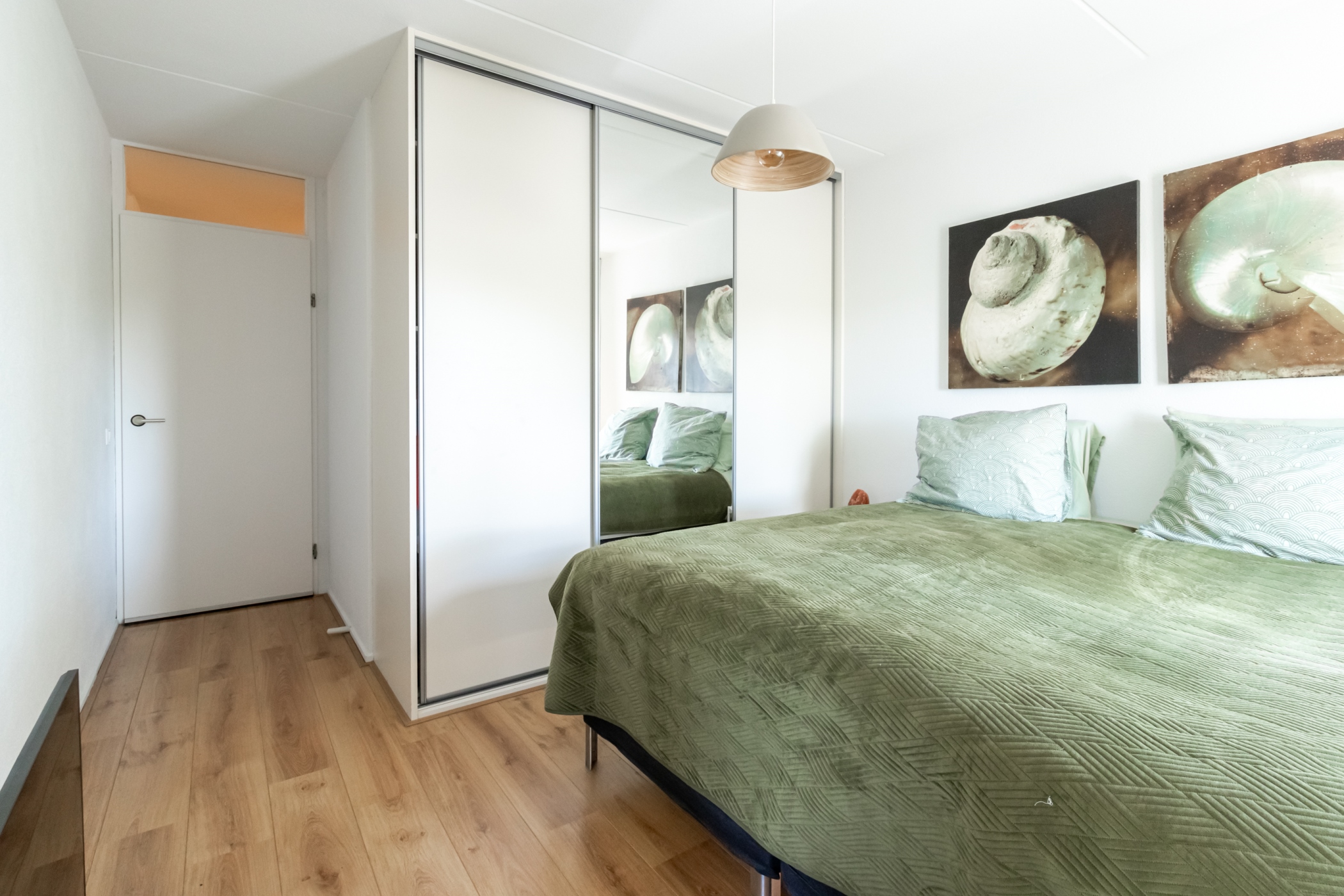 In de tussenhal bevinden zich het toilet en een bergkast met de opstelplaats van de wasmachine, droger en cv-ketel. De 2 slaapkamers zijn beide van goed formaat. Eén van de slaapkamers beschikt over een Frans balkon, waardoor u op warme dagen de deur kunt openen en de kamer kunt vullen met heerlijk frisse lucht. De andere slaapkamer biedt directe toegang tot het terras, waardoor u gemakkelijk naar buiten kunt stappen om de frisse ochtendlucht in te ademen. Ook zijn de kamers aangenaam licht dankzij de aanwezige raampartijen.
