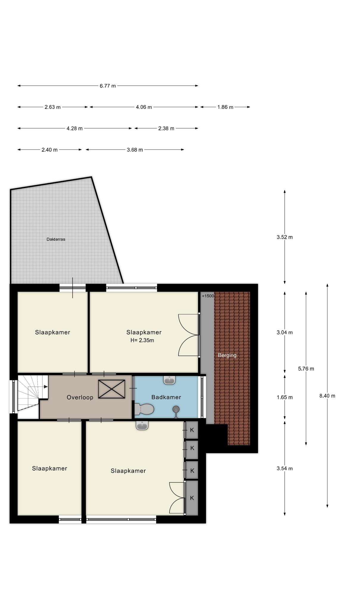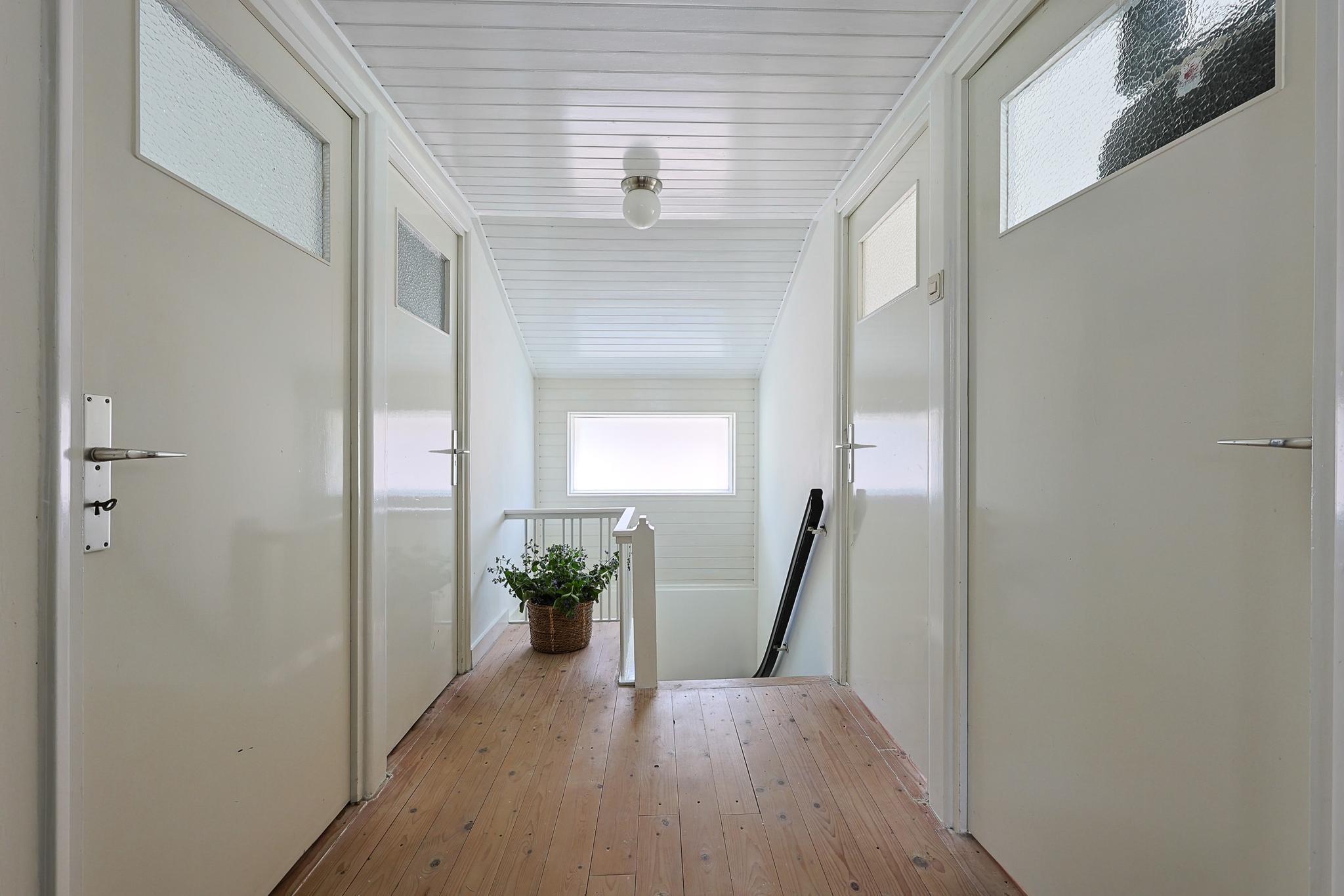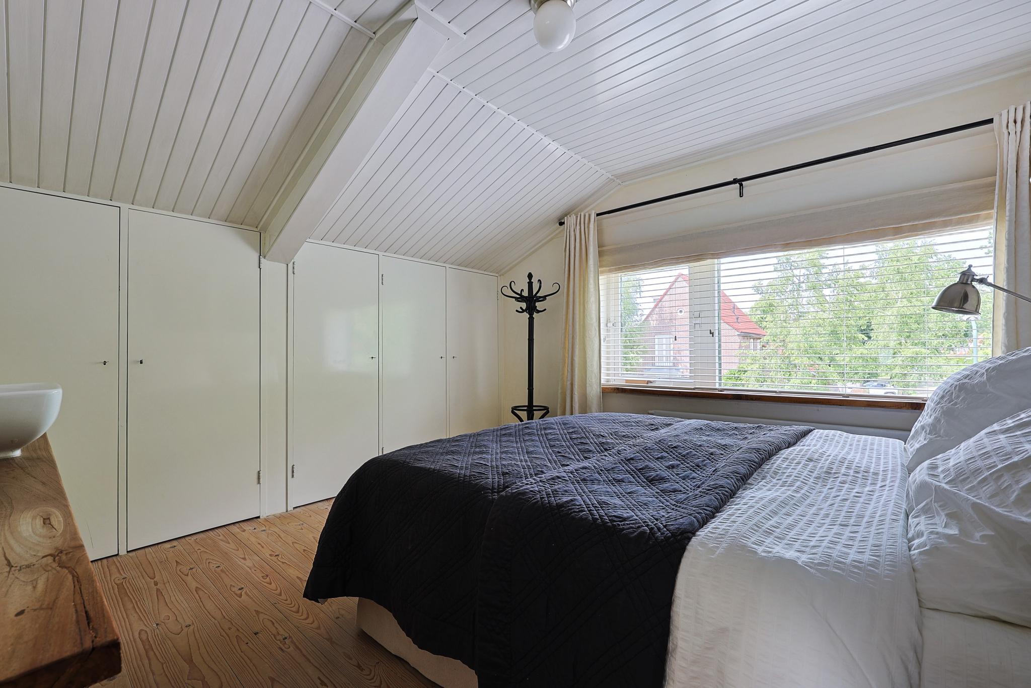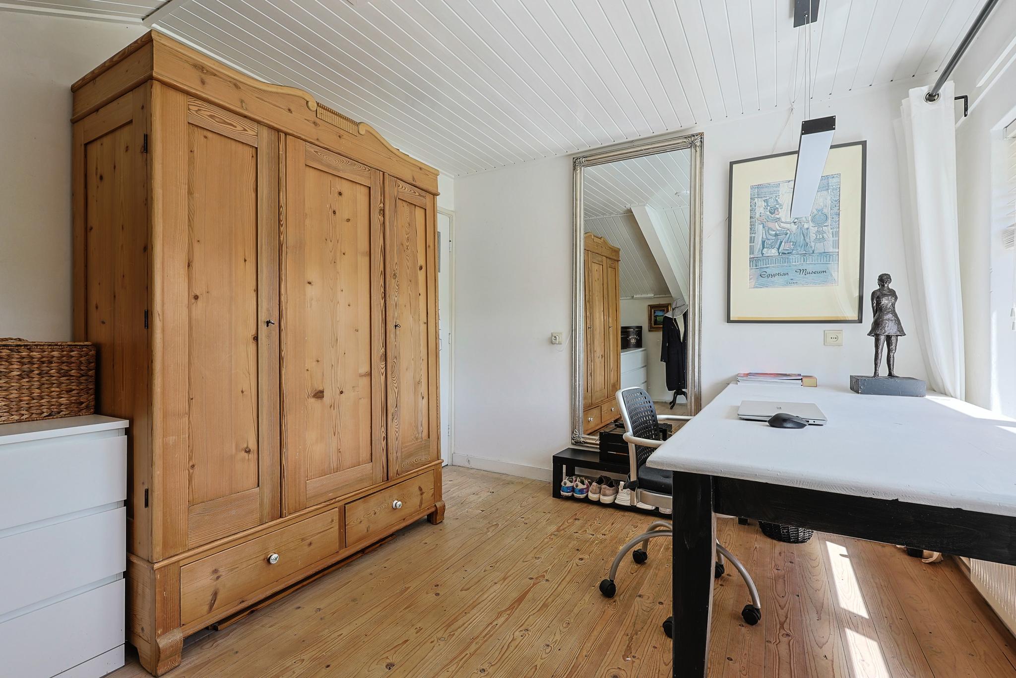 Op de bovenverdieping vindt u vier ruime slaapkamers, elk met voldoende natuurlijk licht en een serene sfeer. Deze kamers bieden volop mogelijkheden voor persoonlijke inrichting en gebruik. Of u nu een rustige slaapkamer, een speelkamer voor de kinderen of een thuiskantoor wenst, deze slaapkamers passen zich aan uw wensen aan. Een van de slaapkamers aan de voorzijde beschikt over een kastenwand en een praktische wastafel, waardoor het gemakkelijk is om ’s ochtends op te frissen zonder de badkamer te hoeven delen. Een van de slaapkamers aan de achterzijde verwent u met een dakterras, terwijl de andere slaapkamer aan de achterzijde is voorzien van een zeer ruime bergkast, waardoor u altijd voldoende opbergruimte heeft voor al uw spullen. Bovendien biedt de vliering, te bereiken via de overloop, extra mogelijkheden voor opslag. De vurenhouten vloer loopt door op de gehele verdieping.