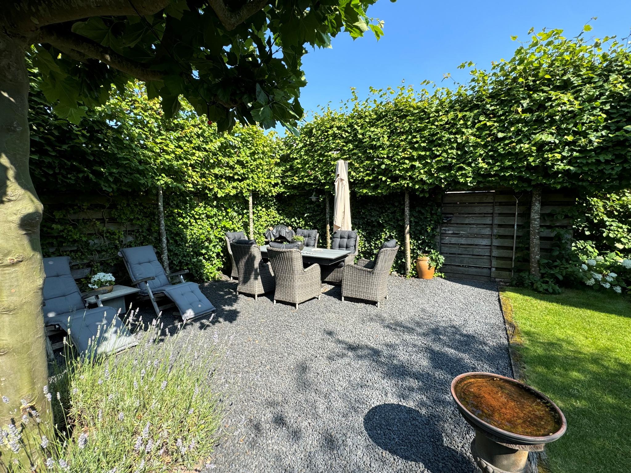 De buitenruimte van deze woning is werkelijk een oase van rust en schoonheid, een idyllische plek om te koesteren. De fraai aangelegde tuin biedt een perfecte plek om te ontspannen of te tuinieren. Met voldoende ruimte voor zowel ontspanning als spel, is deze tuin ideaal voor het hele gezin.