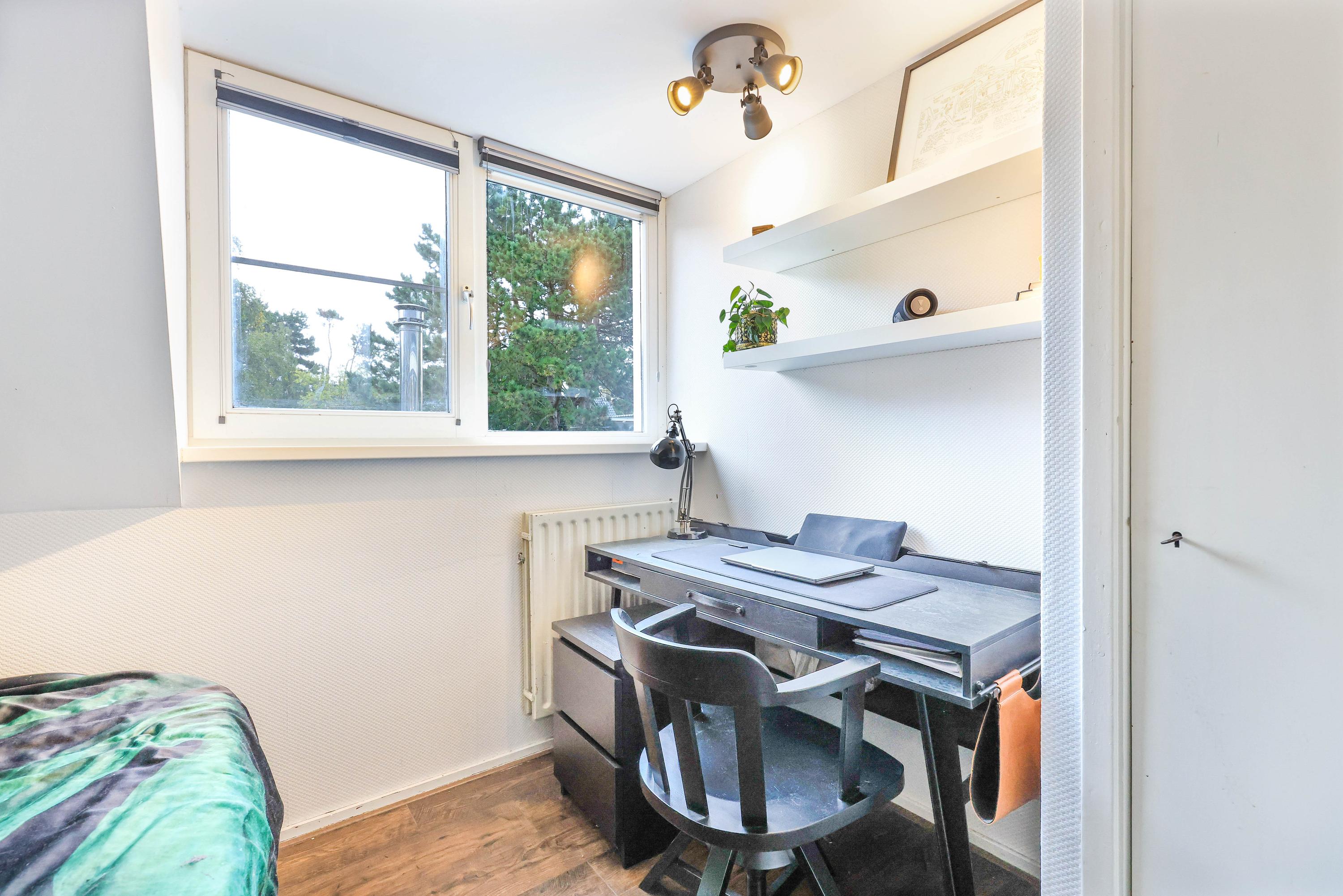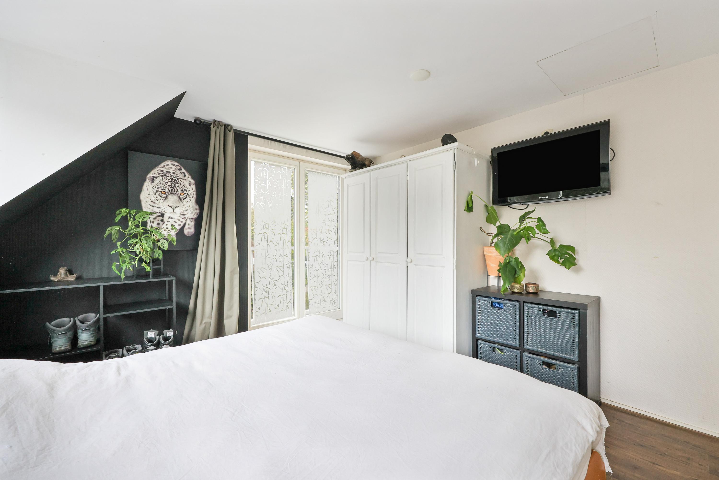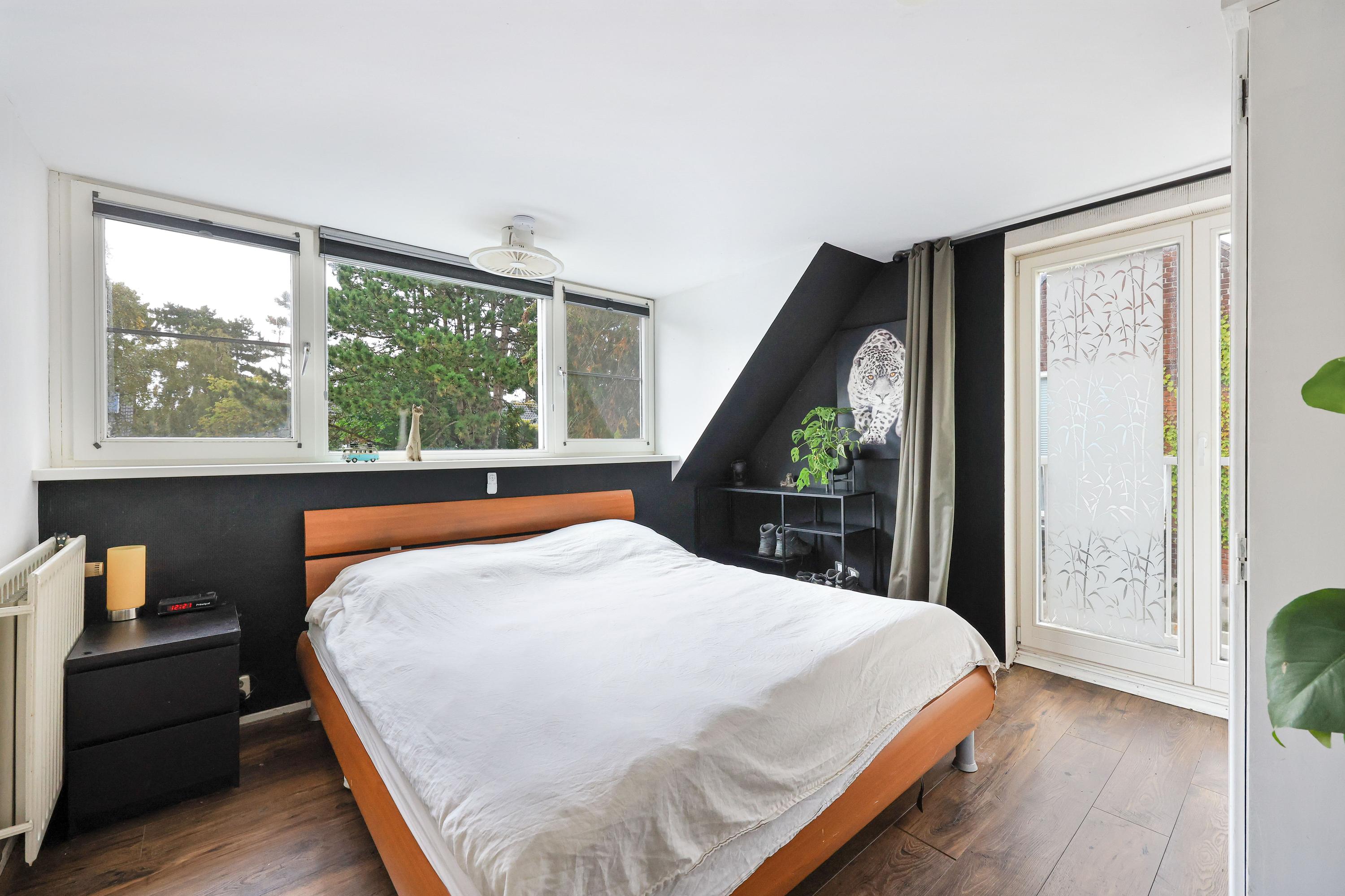 Via de vaste trap bereikt u de eerste verdieping, waar zich aan de achterzijde twee slaapkamers bevinden. Beide kamers zijn netjes afgewerkt met gestucte wanden, voorzien van een fraaie laminaatvloer en beschikken over een dakkapel, wat zorgt voor extra ruimte en licht. Eén van de slaapkamers heeft bovendien openslaande deuren naar een balkon, waar u heerlijk kunt genieten van het uitzicht en het groen.