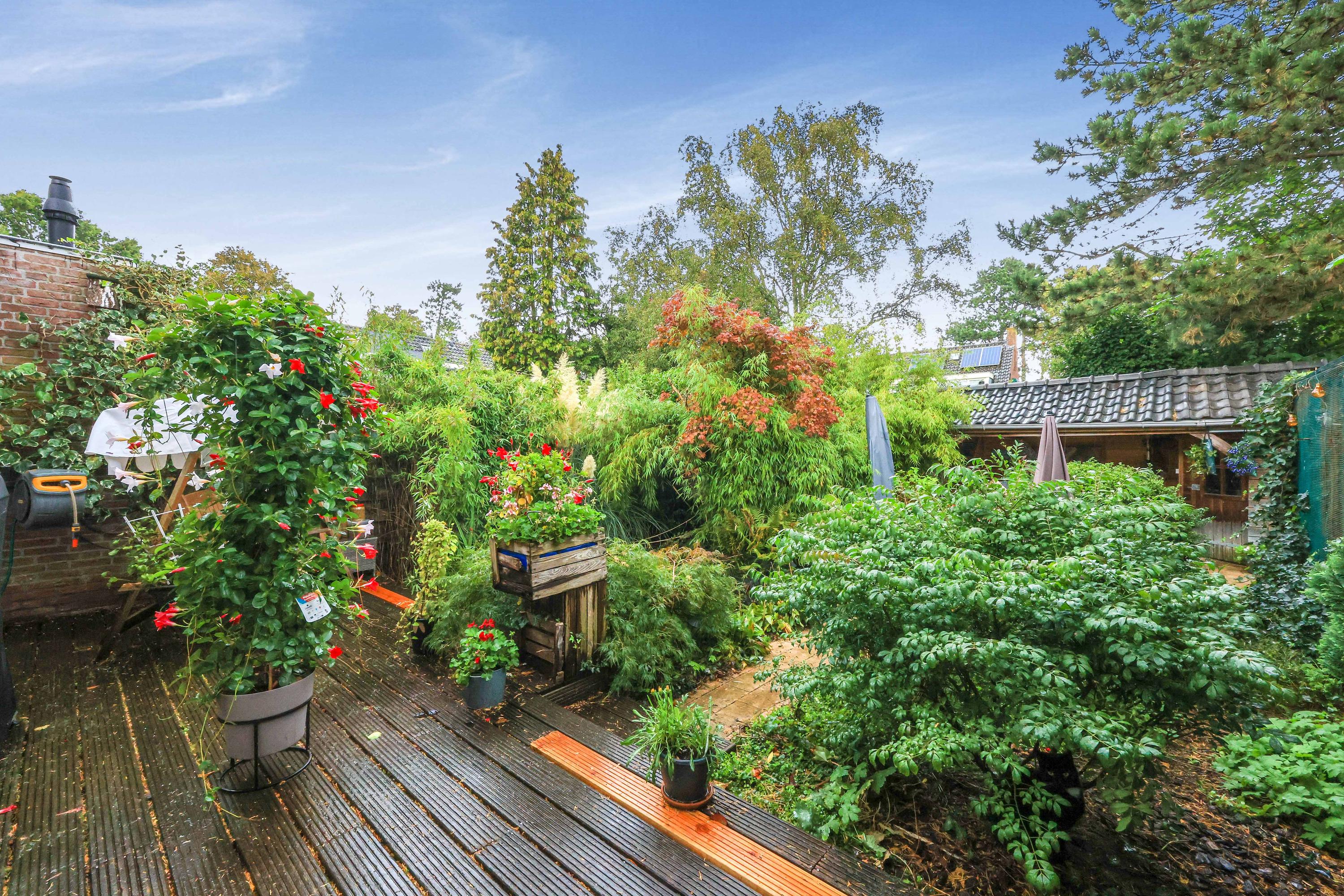 Via de openslaande tuindeuren vanuit de woonkamer stapt u direct het betegelde terras op, vanwaar u uitkijkt op de groene en bloemrijke tuin. Dankzij de diepe ligging en de situering op het noorden geniet u hier de hele dag door van de zon. Verderop in de tuin treft u een charmant watertje met stromend water, een sfeervolle toevoeging die zorgt voor extra levendigheid. Daarnaast beschikt de tuin over maar liefst twee bergingen, beide voorzien van elektra, ideaal voor het opbergen van uw spullen. De veranda vormt de ideale plek om knusse dagen én avonden door te brengen en optimaal te genieten van het buitenleven. Ten slotte beschikt de woning over een achterom en een ruime oprit met carport, wat zorgt voor optimaal gemak en extra praktisch wooncomfort.