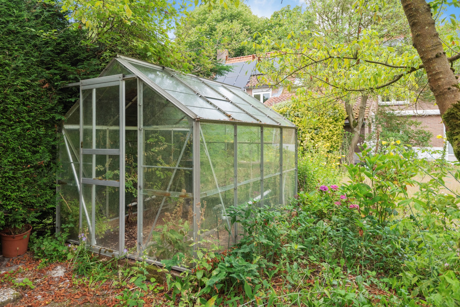 De achtertuin is gelegen op het westen en biedt volop zon én privacy. Met een beetje liefde verandert u deze groene oase in een waar paradijs. Denk aan een kleurrijke siertuin, een eigen moestuin of een sfeervolle veranda, de mogelijkheden zijn eindeloos. De vrijstaande houten schuur met vliering en overkapping maakt het plaatje compleet.